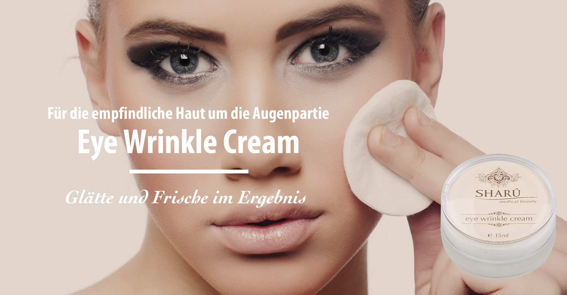 Täglich morgens und abends eine etwa erbsengroße Menge der eye wrinkle cream mit dem Finger gleichmäßig um das Auge verteilen.